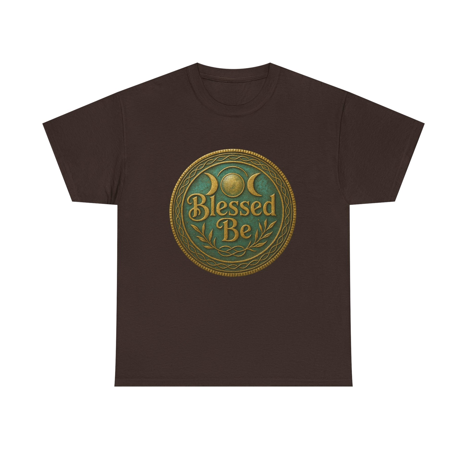 Seal your spell with style. Our Blessed Be Medallion Tee features a coin-inspired emblem: raised-look gold lettering, the Triple Moon at center, and entwined knotwork with laurel sprigs on a weathered teal “patina.” It’s subtle, sacred, and perfectly Para Wear—a wearable charm.