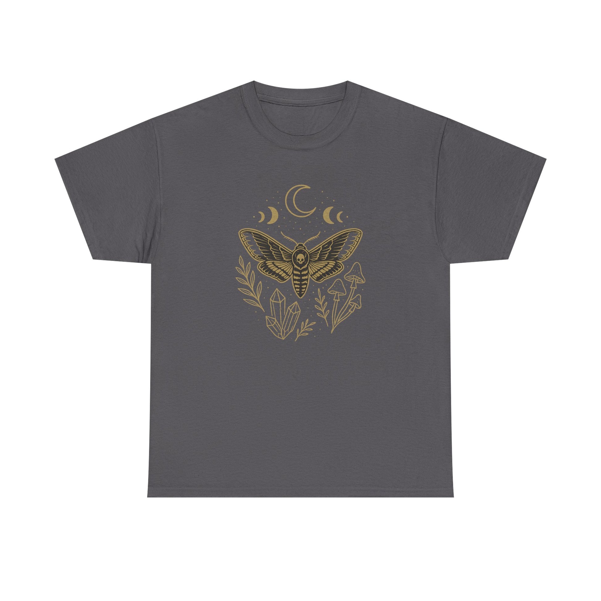 witch shirt • wiccan t-shirt • occult clothing • lunar moth tee • death’s-head moth design • moon phase shirt • crystals and mushrooms • pagan apparel • cottagecore witch top • green witch aesthetic • gothic witch style