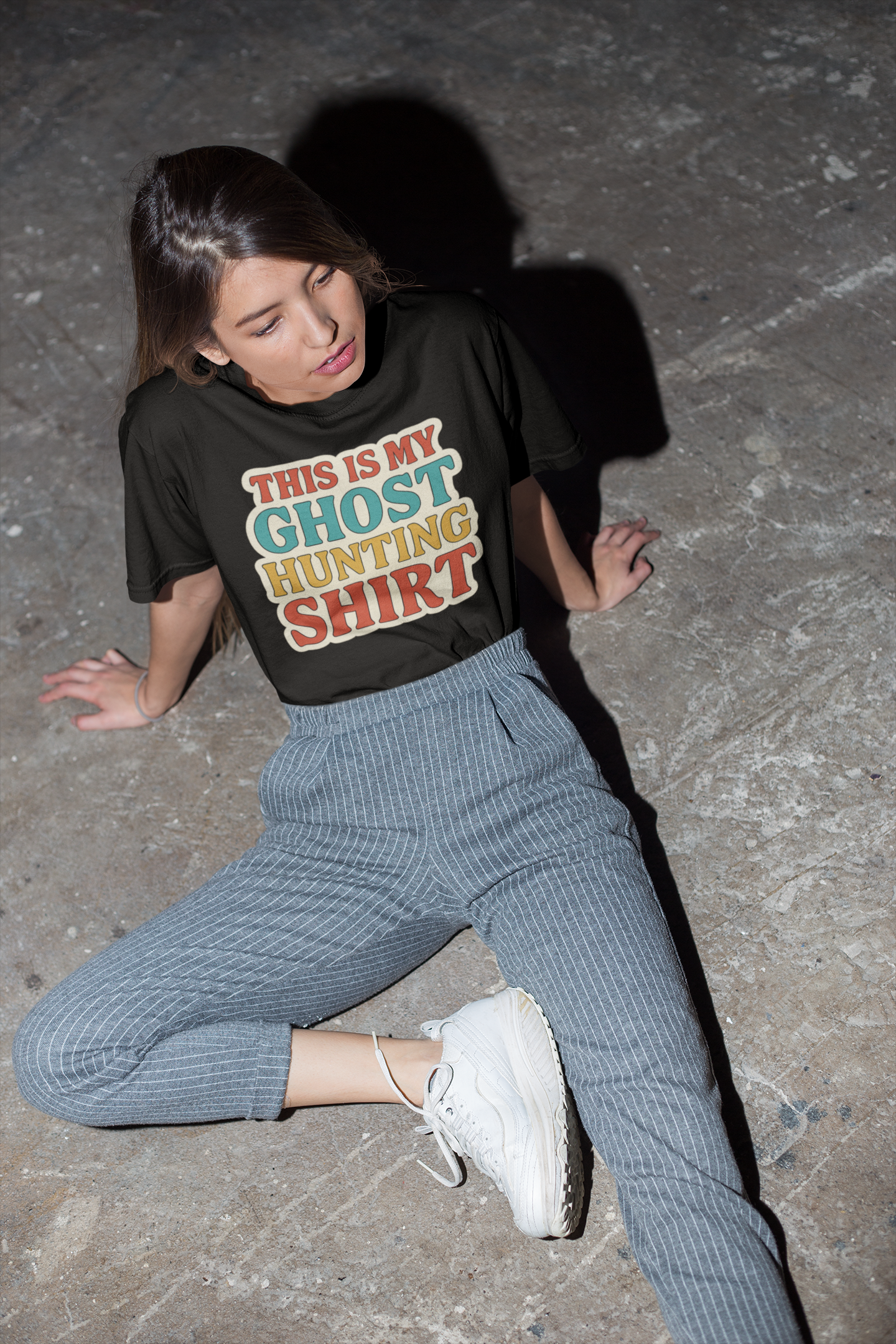 Our “This Is My Ghost Hunting Shirt” is a hilarious yet stylish way to rep your paranormal pride on your next investigation. Whether you’re exploring haunted houses, chasing EVPs, or just binge-watching ghost shows from the couch, this tee lets everyone know you mean spooky business.